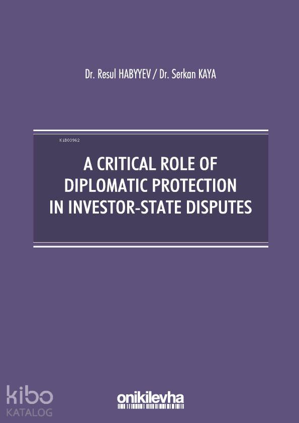 In the new global world of trade, there is an increase in the number of international investments. The continuously increasing international investments raises the probability of international disputes arising between investors and host states. This book aims at discussing current and future roles of diplomatic protection as the main international dispute settlement mechanisms for investor-state disputes.(ARKA KAPAKTAN)