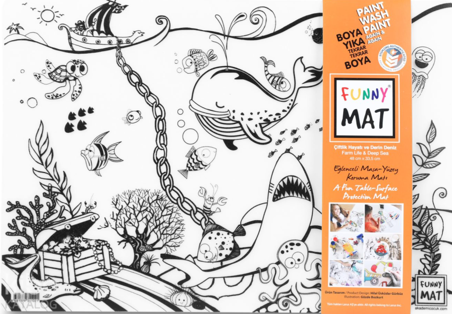 Funny Mat ikili set, her türlü etkinlik sırasında masa ve yüzey koruyucu olarak kullanılabilen bir üründür. Üzerinde yemek yenebilir, kil ve oyun hamuru ile oyun oynanabilir, ders çalışılabilir, boyama yapılabilir… Kendisi de bir etkinlik materyali olan Funny Mat'ın üzerindeki desenler hem keçeli kalemlerle hem de kuru boyalarla istenildiği gibi renklendirilebilir ve çocuklar bu sayede yaratıcılıklarını geliştirebilirler. Suyun altına tutulduğunda veya ıslak mendille silindiğinde kolaylıkla temizlenen Funny Mat, defalarca renklendirme ve aynı ürünü farklı amaçlarla kullanma imkânı vererek bütçe dostu bir ürün olma özelliği de taşımaktadır.