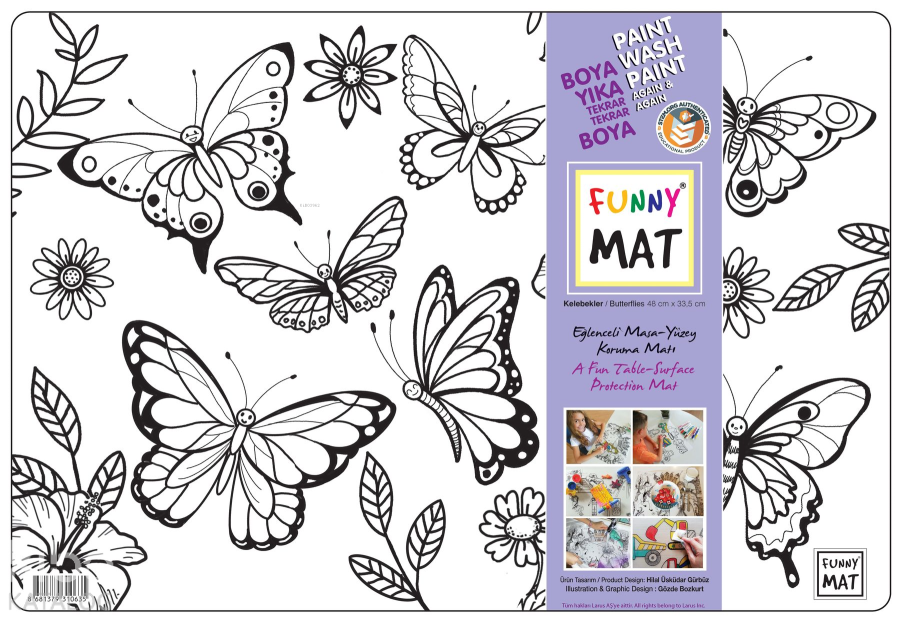 Funny Mat, 33,5x48 cm ölçüsünde her türlü etkinlik sırasında masa ve yüzey koruyucu olarak kullanılabilen bir üründür. Üzerinde yemek yenebilir, kil ve oyun hamuru ile oyun oynanabilir, ders çalışılabilir, boyama yapılabilir… Kendisi de bir etkinlik materyali olan Funny Mat'ın üzerindeki desenler hem keçeli kalemlerle hem de kuru boyalarla istenildiği gibi renklendirilebilir ve çocuklar bu sayede yaratıcılıklarını geliştirebilirler. Suyun altına tutulduğunda veya ıslak mendille silindiğinde kolaylıkla temizlenen Funny Mat, defalarca renklendirme ve aynı ürünü farklı amaçlarla kullanma imkânı vererek bütçe dostu bir ürün olma özelliği de taşımaktadır.