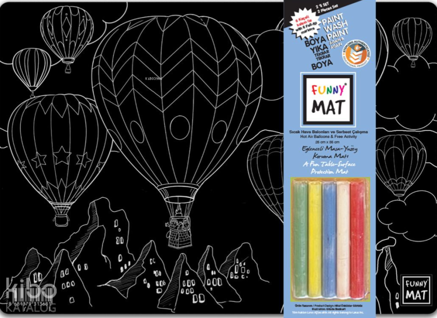 Akademi Çocuk Funny Mat Sıcak Hava Balonu ve Serbest Çalışma 25x35cm 2'li Paket 5'li Tebeşirli Siyah Seri