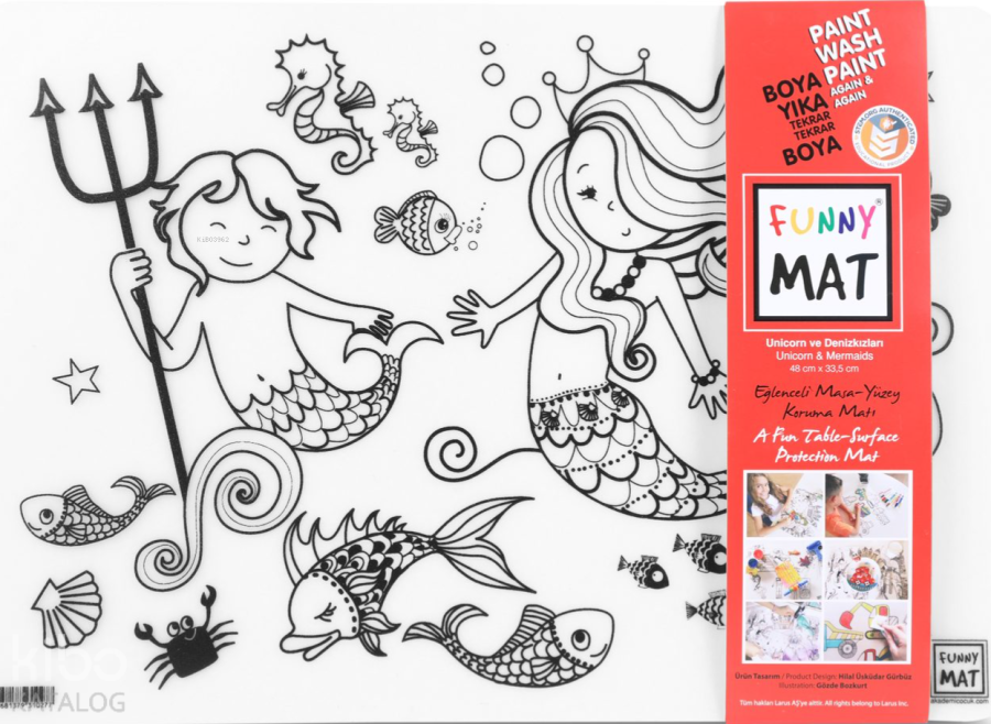 Funny Mat ikili set, her türlü etkinlik sırasında masa ve yüzey koruyucu olarak kullanılabilen bir üründür. Üzerinde yemek yenebilir, kil ve oyun hamuru ile oyun oynanabilir, ders çalışılabilir, boyama yapılabilir… Kendisi de bir etkinlik materyali olan Funny Mat'ın üzerindeki desenler hem keçeli kalemlerle hem de kuru boyalarla istenildiği gibi renklendirilebilir ve çocuklar bu sayede yaratıcılıklarını geliştirebilirler. Suyun altına tutulduğunda veya ıslak mendille silindiğinde kolaylıkla temizlenen Funny Mat, defalarca renklendirme ve aynı ürünü farklı amaçlarla kullanma imkânı vererek bütçe dostu bir ürün olma özelliği de taşımaktadır.