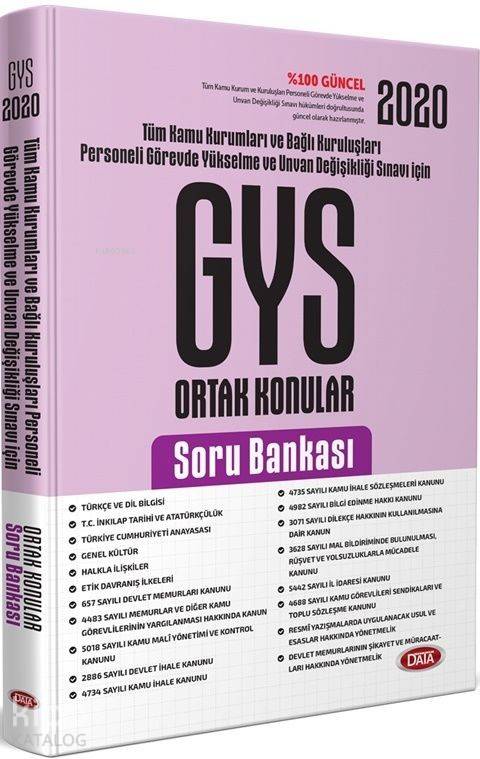 Data Yayınları 2020 Ortak Konular Soru Bankası Türkiye Kamu Kurulumları ve Bağlı Kuruluşları GYS ve Ünvan Değişikliği Ortak Konular