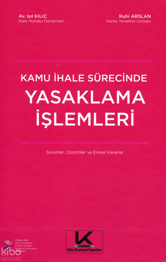 Kamu ihaleleri kapsamında yapılan yasaklama işlemleri, taahhüt firmaların telafisi mümkün olmayan zararlara uğramasına neden olmaktadır. Ancak yasaklama işlemlerin büyük bir bölümü ihale sürecinde yaşanmakta ve basit usul hatalarından kaynaklanmaktadır. İdarelerce yapılan yasaklama işlemlerinin önemli bir bölümü de mahkemelerce iptal edilmektedir. Bu kitabın amacı yaşanan veya yaşanması muhtemel yasaklama işlemlerine karşı gerekli olan çözümleri, okuyucularla paylaşmaktır. Kitaba eklenen 220'den fazla emsal karar ve örnek olaylar, kitabın çözüm odaklı nitelikte olmasını sağlamıştır. Kitap bu yönüyle; kamu taahhüt firmaları, ihale yetkilileri, ihale komisyonları ve ilgililer için eşsiz bir kaynaktır.