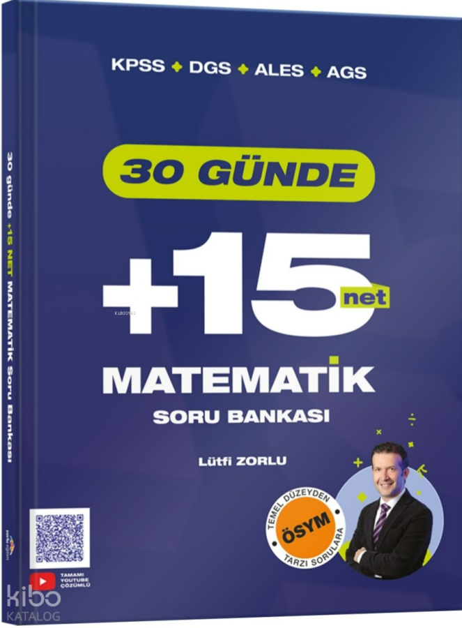 30 Günde +15 Net Matematik Soru Bankası, KPSS, DGS, ALES , MEB AGS ve aynı zaman KPSS Önlisans ve Ortaöğretim sınavlarına hazırlanan adaylarımızın matematik netlerini kalıcı ve gerçekçi bir şekilde artırabilmeleri amacıyla uzun bir emek ve tecrübenin sonucunda hazırlanmıştır.
